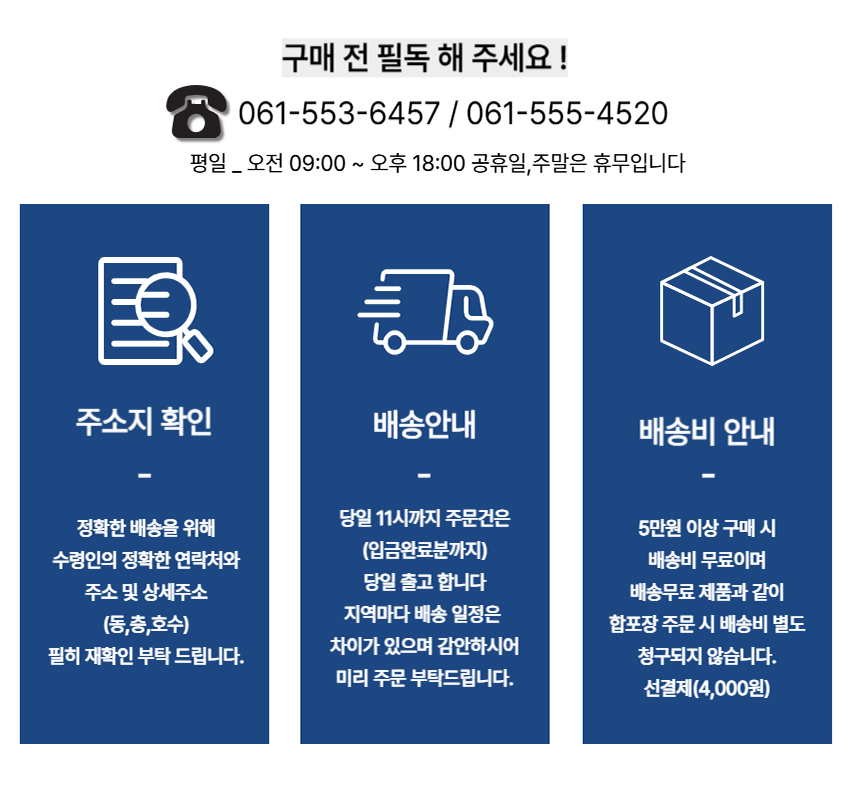 - 소비자상담 관련 전화번호: 061-553-6455 / 061-555-4520
