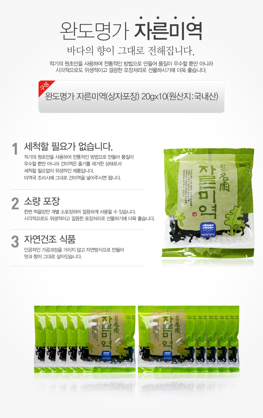- 상품구성: 자른미역(상자포함) 20gX10봉