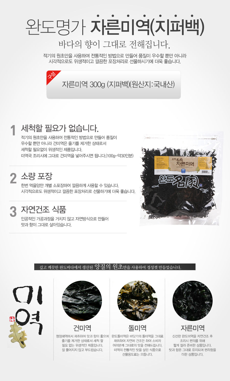 - 상품구성: 자른미역(지퍼백)300g