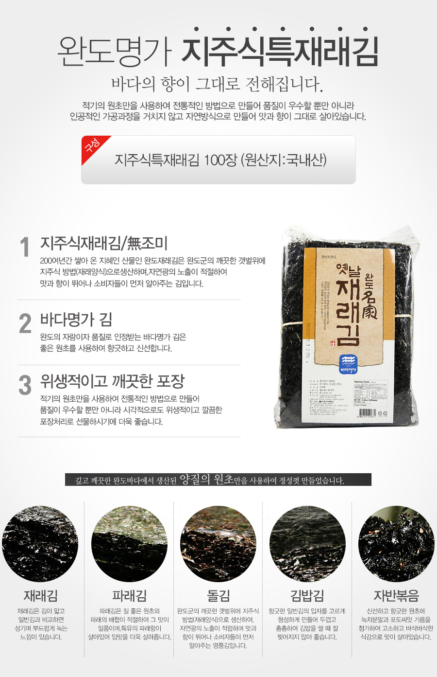 - 상품구성: 재래김(특) / 중량(입수량) : 100장