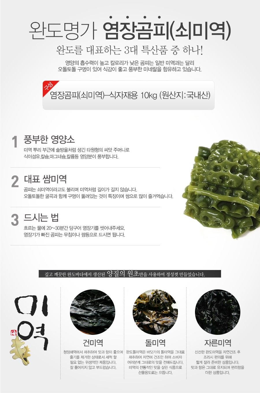 - 품목 또는 명칭: 곰피(쇠미역-식자재용) / 중량 : 10kg