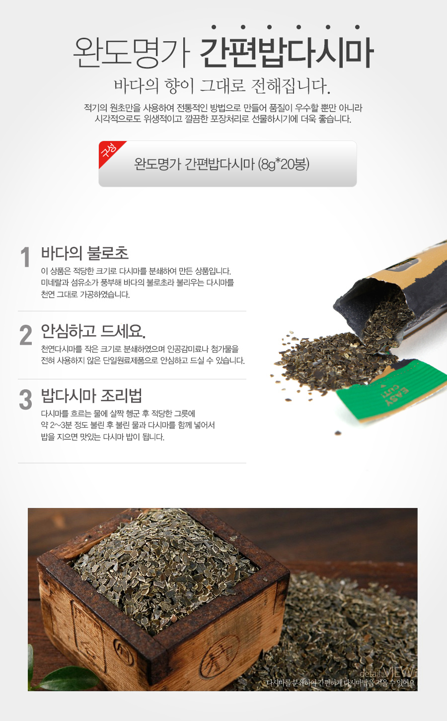 - 제품명: 밥다시마(스틱형) / 중량 : 8g x 20봉