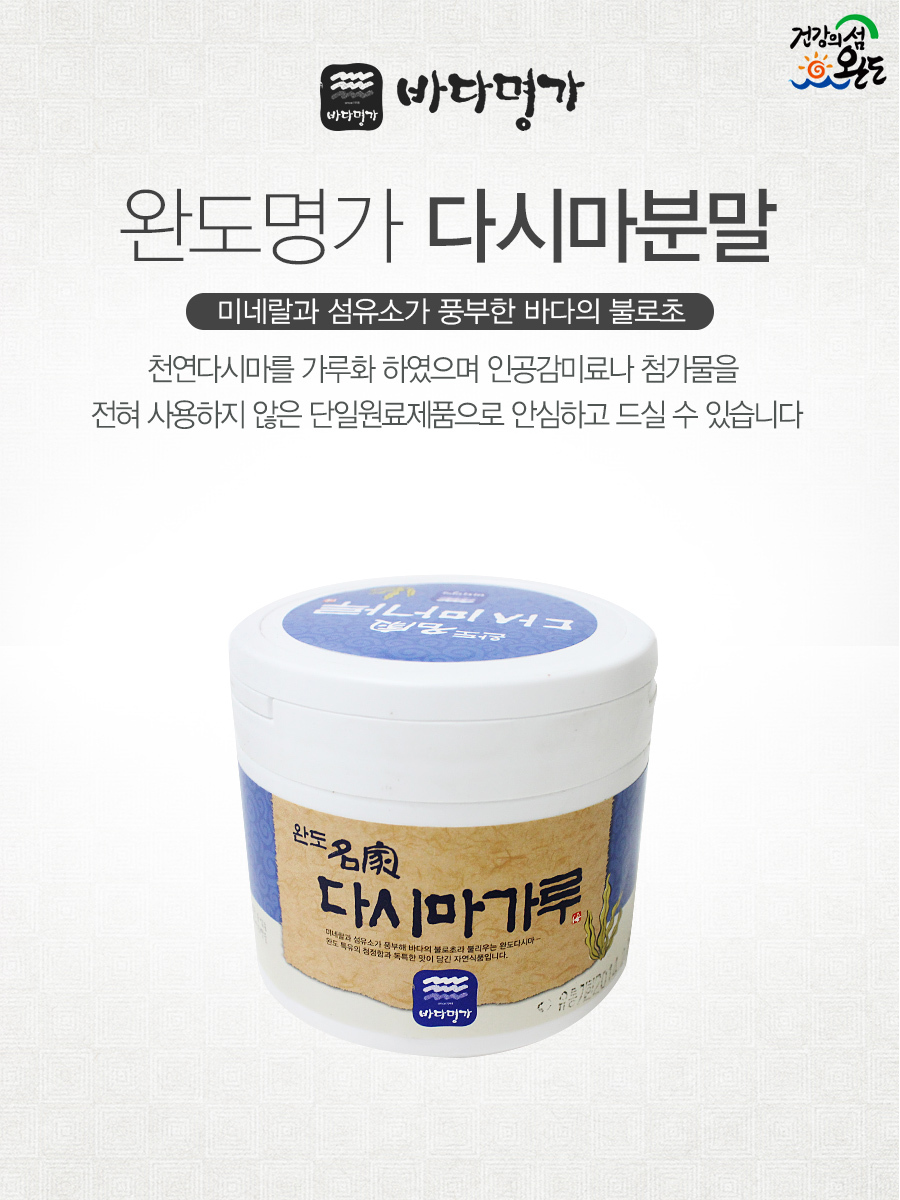 - 생산자 및 소재지: 제조/판매원 : 주식회사 바다명가 / 전남 완도군 완도읍 농공단지4길 12