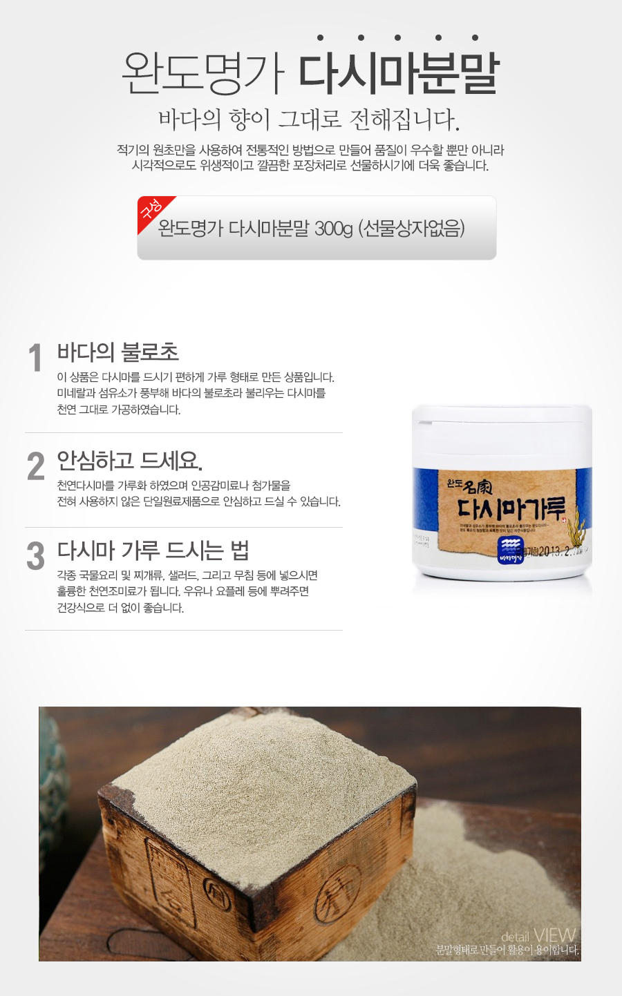 - 포장단위별 내용물의 용량(중량), 수량: 다시마분말 / 중량 : 300g