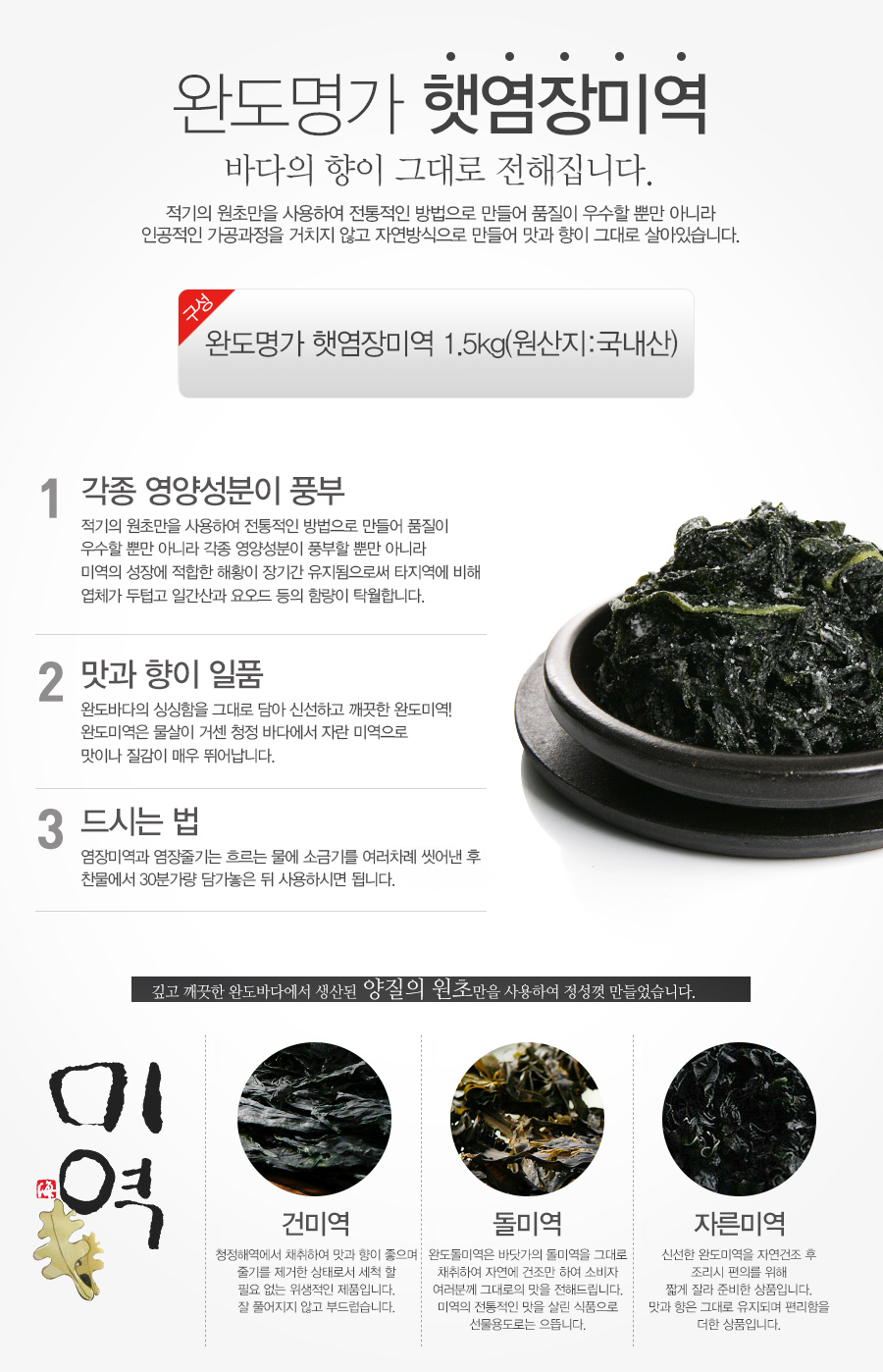 - 상품구성: 햇염장미역 1.5kg
